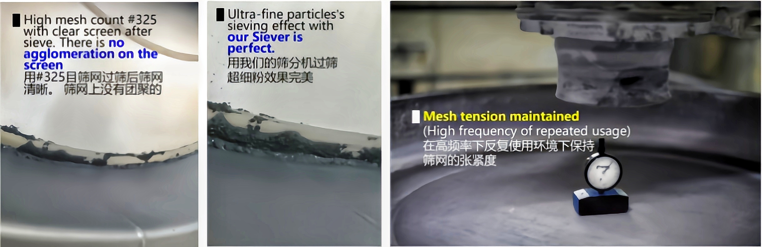 Mampu memisahkan partikel halus dengan diameter berdekatan secara jelas tanpa mengubah sifat material, sangat cocok untuk material baru.